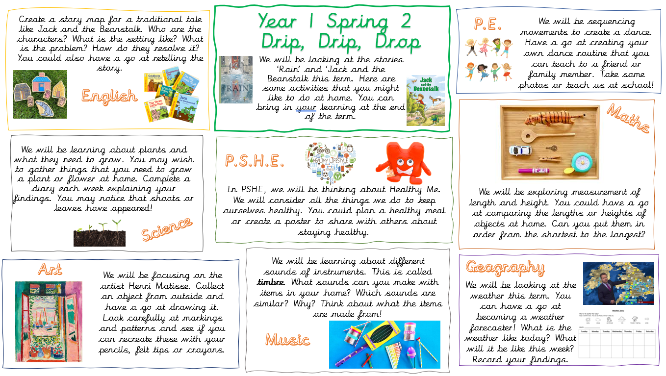 Our P.E. day is on: Friday until further notice. Please make sure your child comes to school wearing their P.E. kit on this day.